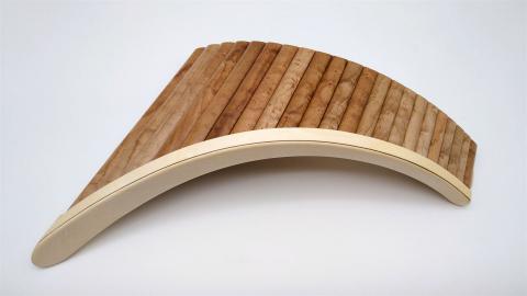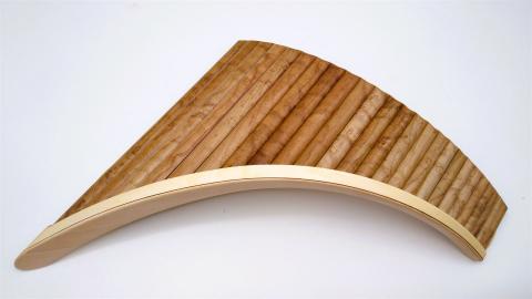 Es handelt sich um eine mit Furnier beschichtete Panflöte.